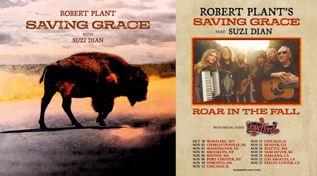 Plantin nykyisen bändin nimi on Saving Grace . Plant tutustui heihin kotiseudullaan jo vuonna 2019 ja suunnitelmissa oli myös kiertue heidän kanssaan. Maailmanlaajuinen Korona-pandemia vuosina 2020-2022 kariutti kuitenkin suunnitelmat ja Plant päättikin palata Amerikkaan tekemään yhteistyötä Alison Kraussin kanssa. Plant oli julkaissut jo vuonna 2007 Kraussin kanssa albumin Raising Sand, joka menestyi maailmalla erinomaisesti. Alati uutta etsivänä levottomana sieluna Plant keskeytti kuitenkin yhteistyön Krausin kanssa vuoden 2008 kiertueen jälkeen. Yhteistyö Alisonin kanssa jatkui vasta Korona-aikana ja tuotti vuonna 2021 albumin Raise The Roof sekä sitä seuranneet yhteiskiertueet vuosina 2022-2024. Sitten Plant palasi taas Englantiin ja jatkoi tauolla ollutta yhteistyötään Saving Gracen kanssa. Lopputuloksena oli upea cover-albumi Saving Grace, joka ilmestyi syyskuussa 2025. Erityisen hienoa oli se, että Plant promosi albumia vuoden 2025 Euroopan kiertueella jo monta kuukautta ennen sen ilmestymistä! Näin yleisö sai ainutlaatuisen musiikkikokemuksen, sillä nykyään yhä harvemmin artistit esittävät kappaleita, joita he eivät ole vielä julkaisseet.