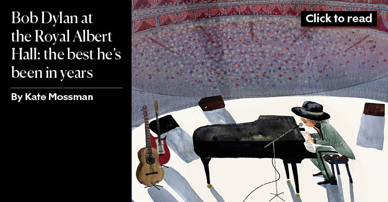 Vuoden 2024 kiertue päättyi Lontoon Royal Albert Hallin keikkoihin. Kun Dylanin keikkoja ei enää saa kuvata niin oheisen jutun kirjoittaja turvautui piirokseen.