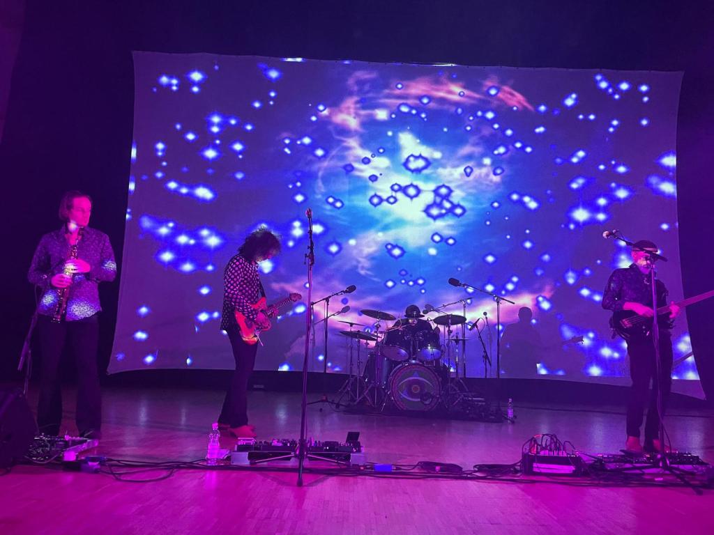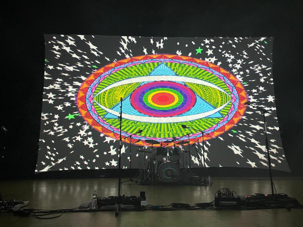 Ennen kuin bändi tuli lavalle nähtiinkin jo joitain Gongin perustajan David Allenin (1938-2015) aikanaan kehittelemiä symboleja heijastettuna salin takaseinän jättikankaalle.