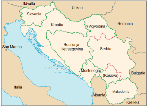 Pohjoinen Slovenia ja eteläinen Makedonia ilmoittivat itsenäisyydestään vuonna 1991. Jugoslavian serbijohtoinen hallinto antoi Makedonian mennä vähin äänin, Sloveniankin osalta yritykset perua osavaltion itsenäisyminen kuivuivat kasaan muutamassa päivässä.