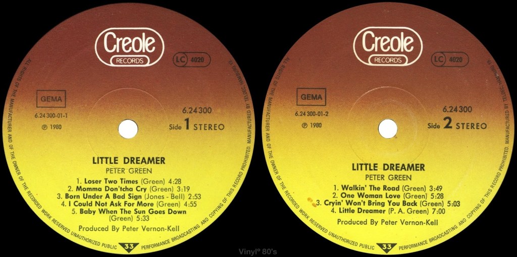 Olen kuunnellut tarkkaan kaikki Peterin vuosina 1979-83 julkaistut soololevyt ja koska siellä tuota ensimmäistä levyä lukuunottamatta pääsääntöisesti kappaleiden tekijäksi on tosiaan merkitty M.D. Green niin en voi välttyä siltä ajatukselta, että onko sittenkin kyse Green Manalishi -ilmiöstä eli siitä että kun raha on Peterin mukaan lähtöisin paholaisesta niin hän halusikin laittaa kappaleet pelkästään veljensä nimiin, koska veli ei ollut taloudellisesti yhtä hyvässä asemassa kuin hän. Tämä on toki vain minun spekulaatiotani ja toivon että jossain vaiheessa julkaistaan kattava (1946-2020) biografia Peter Greenistä ja toivon että siinä otettaisiin kantaa siihen kuka teki mitäkin vuosina 1979-83.